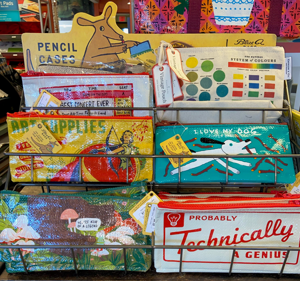 Blue Q is about making you happy. Whether you're storing coins or your favorite art supplies, these cute graphic bags will put a smile on your face!