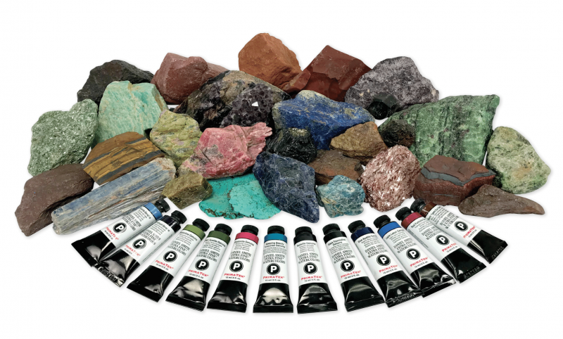 Made from minerals, PrimaTek Watercolors are often made with semi-precious minerals that have been ground into pigments, mixed with gum arabic (the binder) and milled. The first was Lapis Lazuli Genuine in 1998. Since then, many more have been added, such as Amethyst Genuine, Piemontite Genuine and Serpentine Genuine. Most of these colors have wonderful granulating effects that some artists have called "magical".
